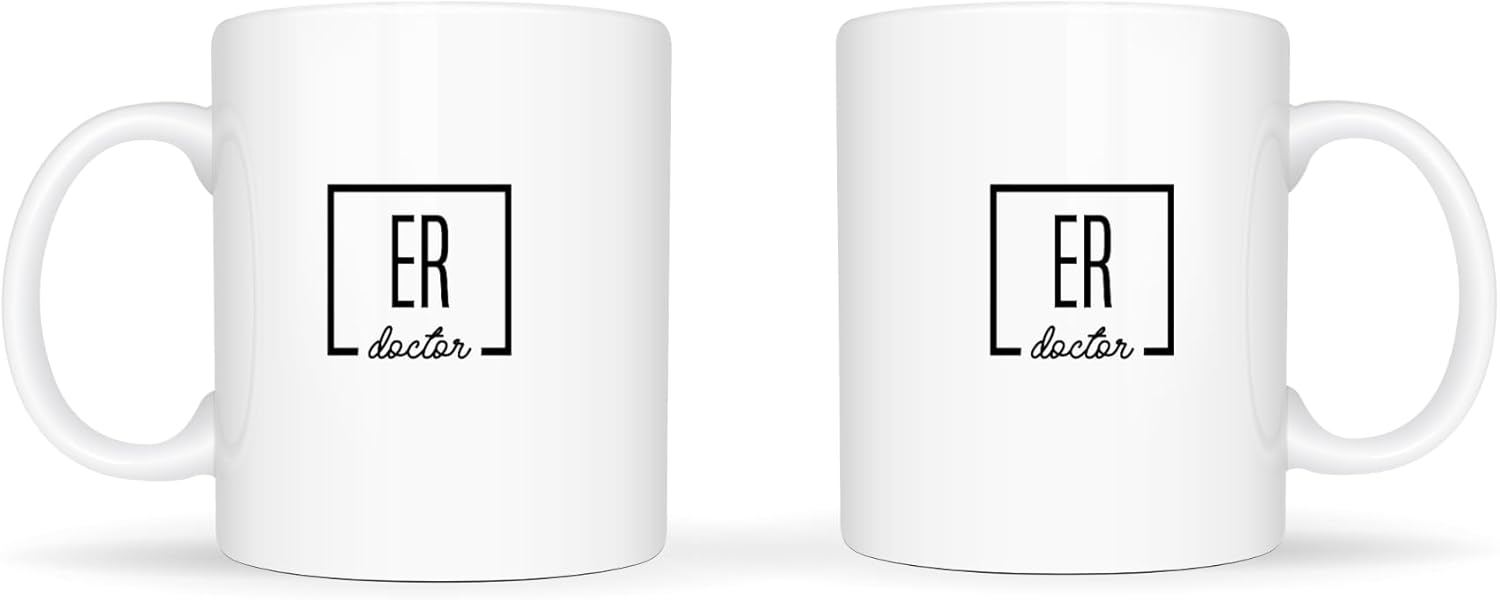 - PREMIUM DESIGN: Classic white ceramic mug featuring a minimalist 'ER Doctor' logo design in black, perfect for medical professionals